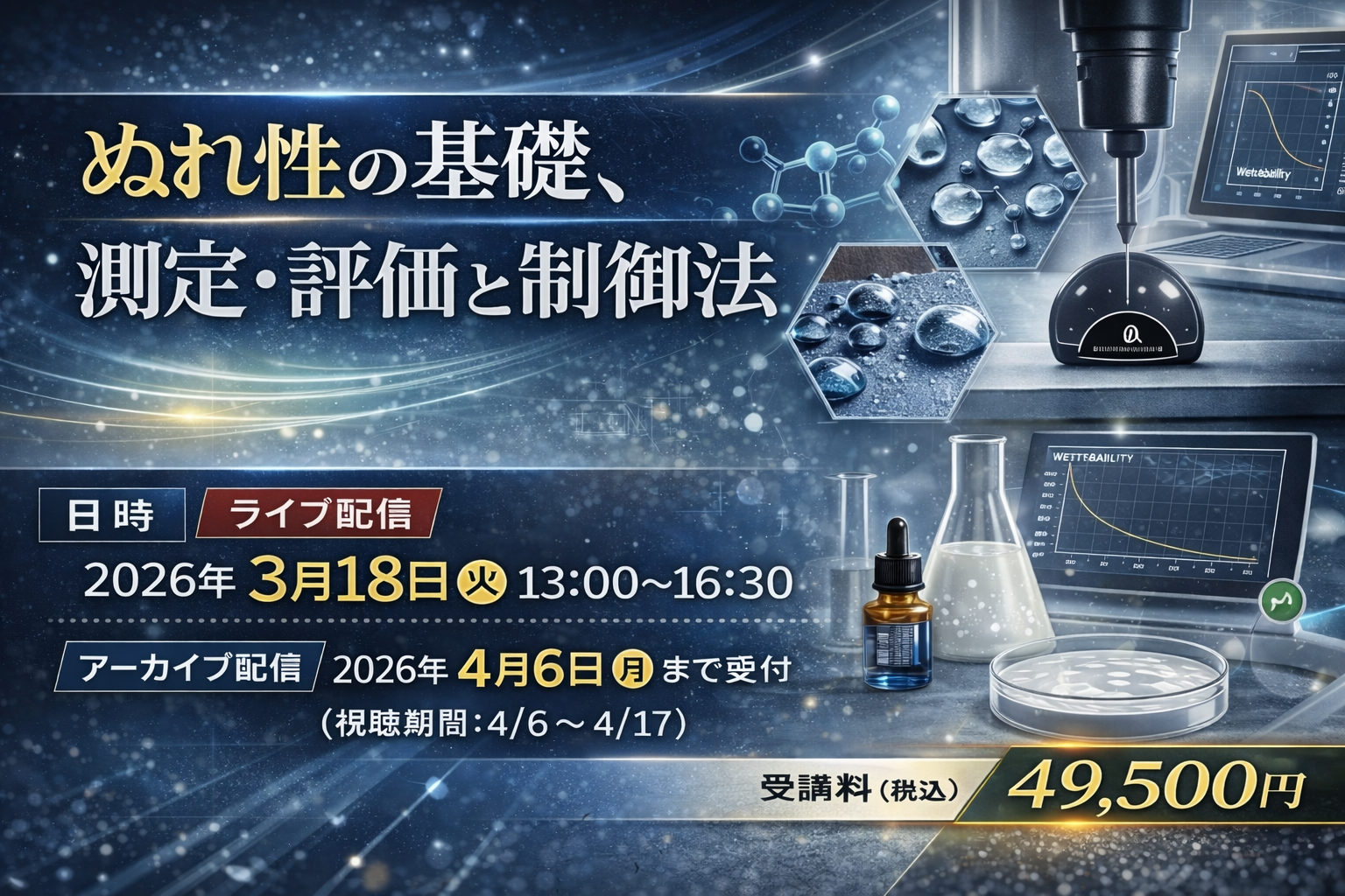 ぬれ性の基礎、測定・評価と制御法|セミナー ぬれ性セミナー 表面現象の本質を理解する ぬれ性の基礎、測定・評価と制御法 ~「濡れる...