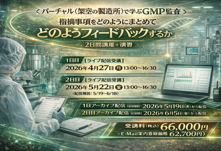 バーチャルで学ぶGMP監査セミナー – 2日間講座+演習 eCompliance 概要 講演内容 関連商品 問い合わせ...