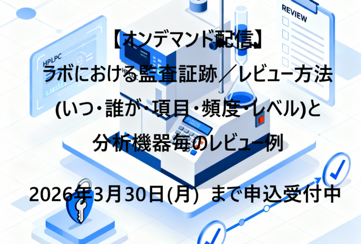 【オンデマンド配信】ラボにおける監査証跡/レビュー方法(いつ・誰が・項目・頻度・レベル)と分析機器毎のレビュー例