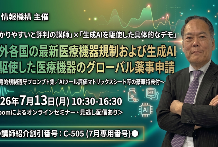 海外各国の最新医療機器規制および生成AIを駆使した医療機器のグローバル薬事申請~戦略的規制遵守プロンプト集/AIツール評価マトリックスシート等の豪華特典付~